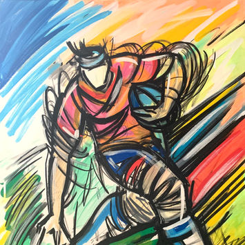 Fortement inspiré par notamment le Pop-art, le Street-art, deux mouvements très influents dans le monde de l'art, j'ai opté pour le jaillissement du trait et de la couleur, la recherche de l'essentiel, du «droit au but créatif».